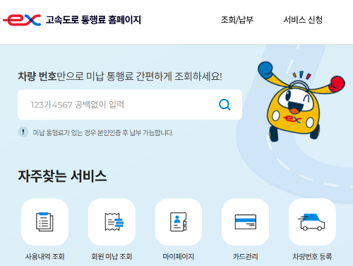- 한국도로공사 홈페이지 또는 통행료 서비스 플러스 앱 실행